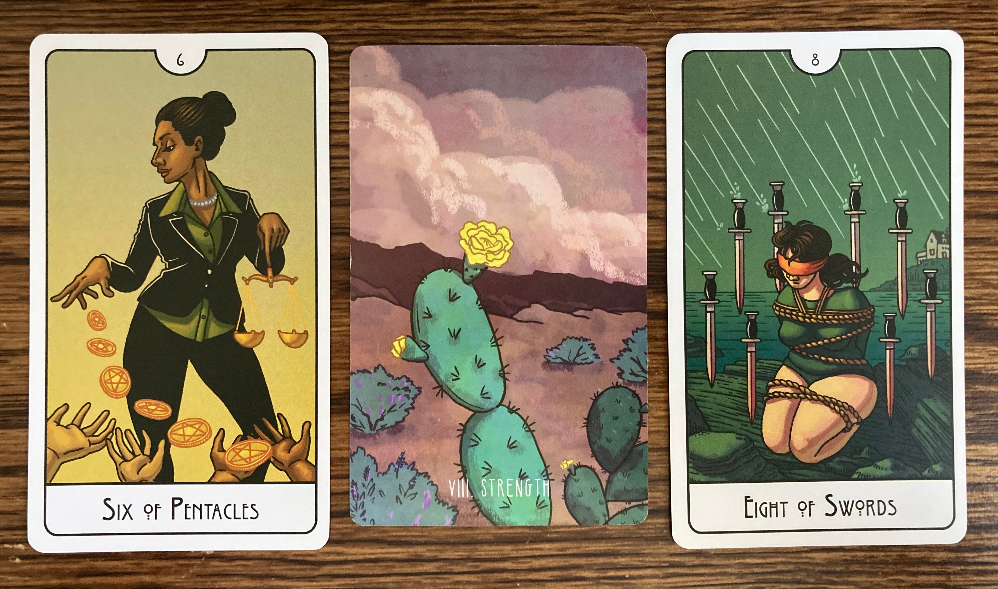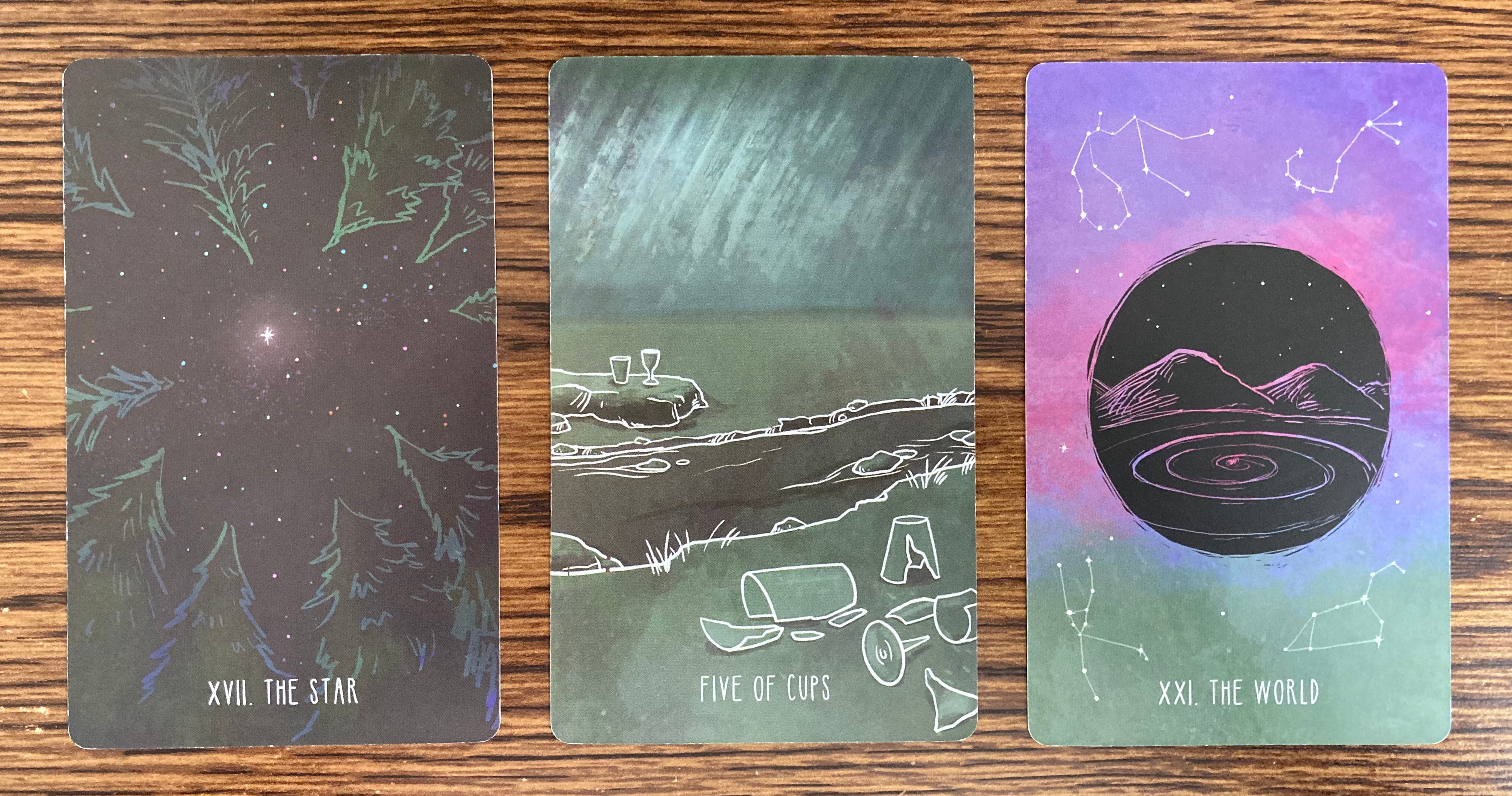 (L-R: This Might Hurt Tarot, The Spacious Tarot, This Might Hurt Tarot)